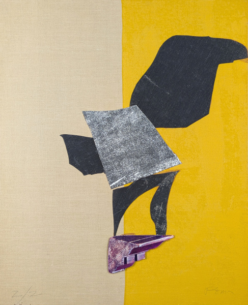 (Conforme obra original Corbeau, 1981 . colagem e tinta acrílica sobre tela, com objeto). Raisonné II, nº 333.