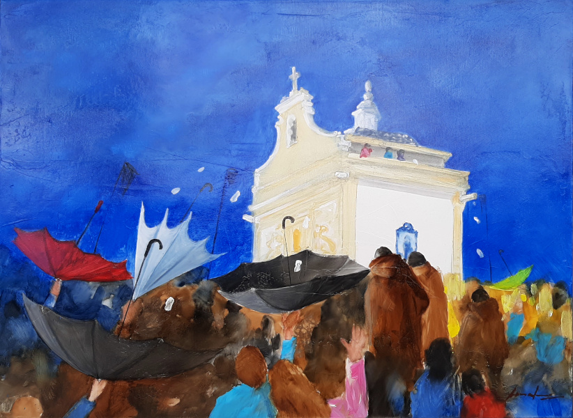 Evocação do aguarelista António Neves ao Santo Padroeiro do Bairro da Beira Mar em Aveiro, São Gonçalinho, cujas festividades se celebram no fim de semana mais próximo do dia 10 de janeiro. São particularmente reconhecidas pelo lançamento de cavacas do alto da capela, para pagamento de promessas pelos devotos.