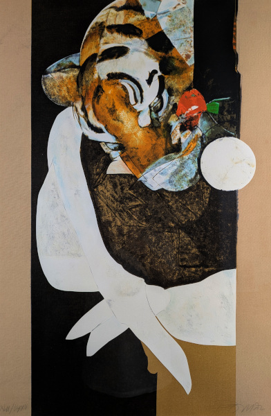 Técnica: Elementos litográficos e tecidos montados sobre cartão