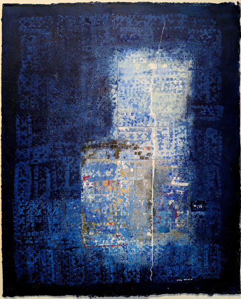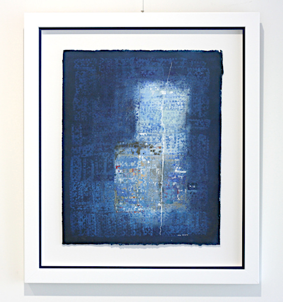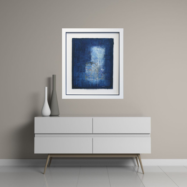 Moldura branca com friso azul e vidro especial True Vue ultra vue uv70 - vidro especial anti reflexo, que permite alta transmissibilidade de cores puras e garante 70% de proteção aos raios uv.